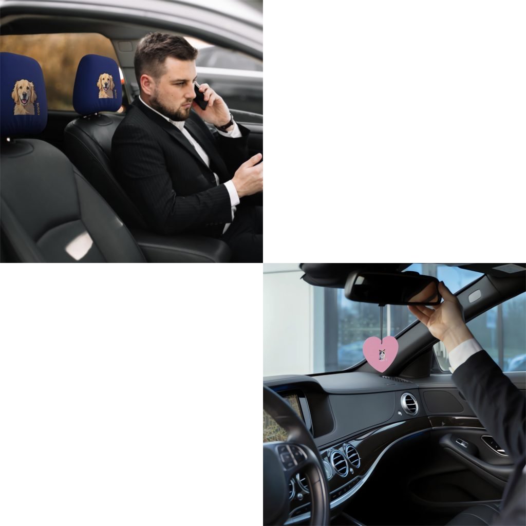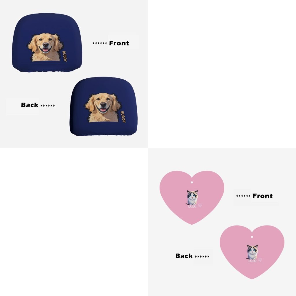 Elevate your driving experience with this Custom Pet Portrait Car Set, combining comfort, protection, and personalization.