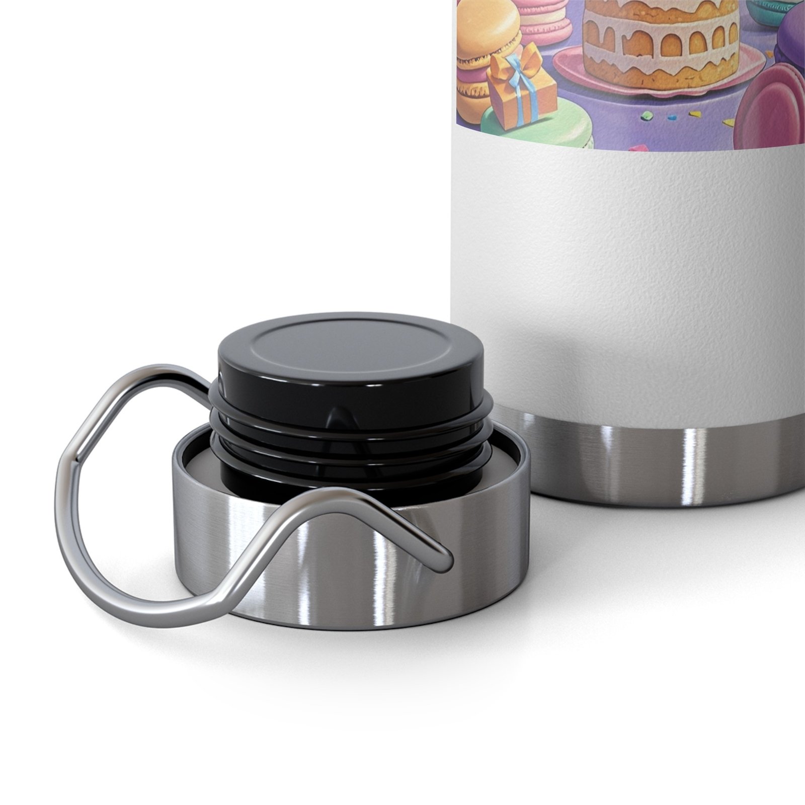- Lid: Screw-on, spill resistant, stainless steel hand loop